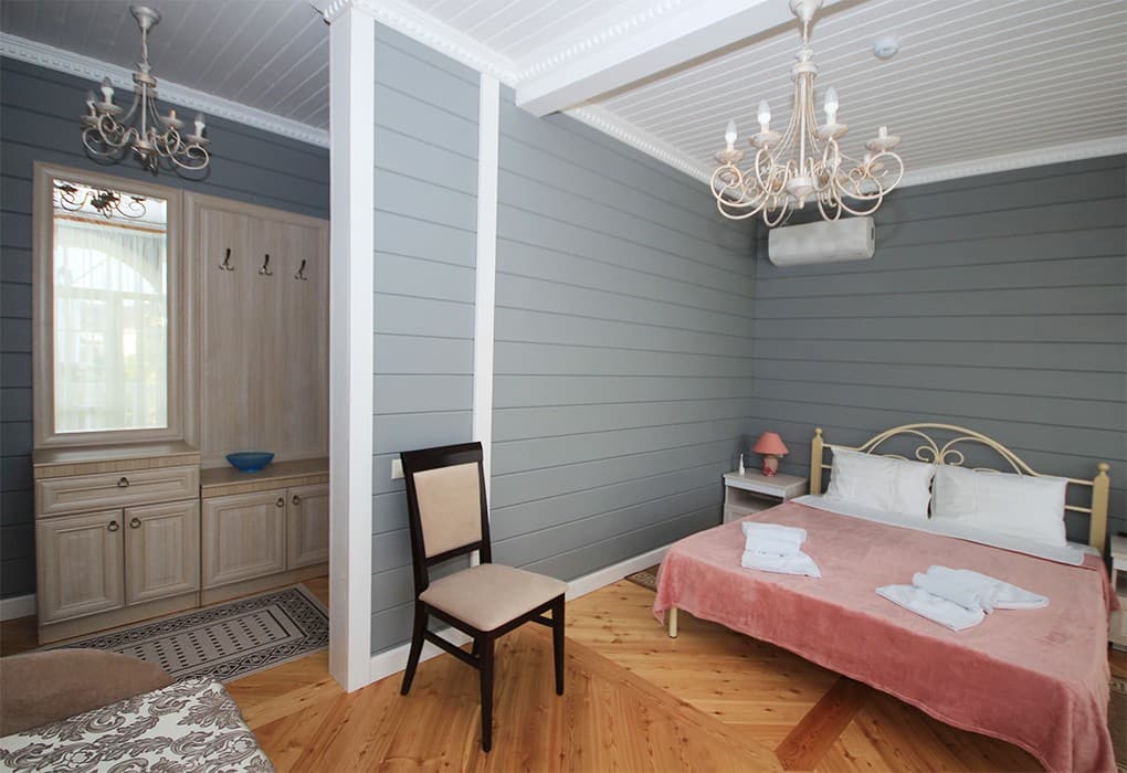 Номер оснащен двуспальной кроватью и подходит для размещения двух постояльцев. В номере уверенный прием Wi-Fi.